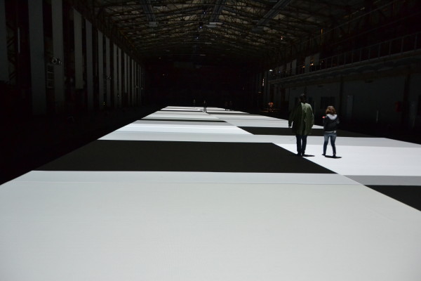 test pattern 100m. R.Ikeda, @ Duisburg. (until 15.Sept.2013) -> Ryoji Ikeda: test pattern [100 m version] – Ruhrtriennale 2012-2014 – audiovisual installation