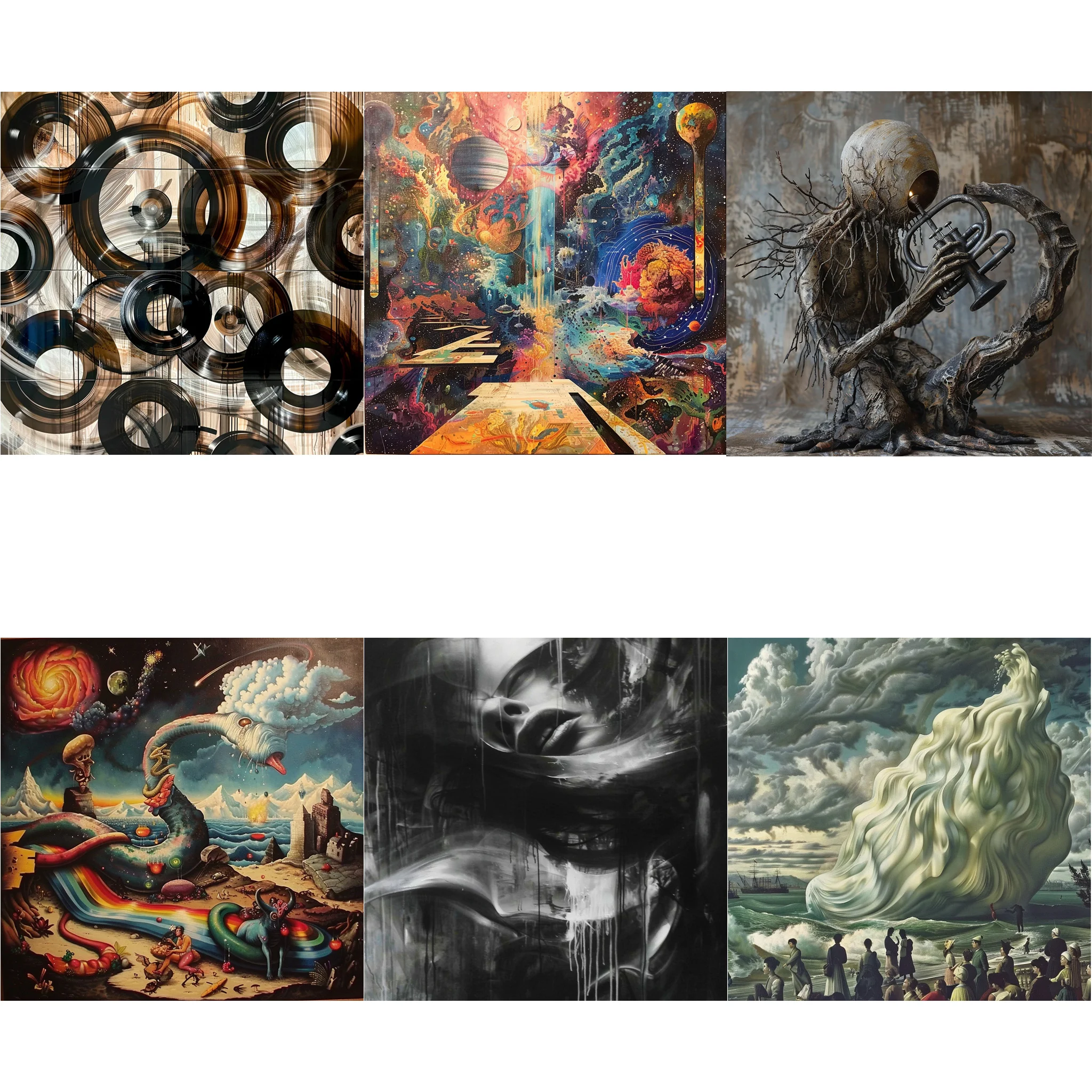 Vier Musiker:innen sitzen im Kreis. Jede:r hat einen eigenen, einfachen Klangerzeuger (z. B. ein kleines analoges Gerät, ein DIY-Synth, ein modifiziertes Alltagsobjekt oder ein Tablet mit einem minimalistischen Synth-App) und eine Lautsprecherbox, die nach außen oder innen gerichtet ist. Es wird per Zufall oder durch einen Moderator ein abstraktes Bild (z. B. ein Gemälde, eine generative Grafik, ein Makrofoto etc.). an die Wand projiziert..