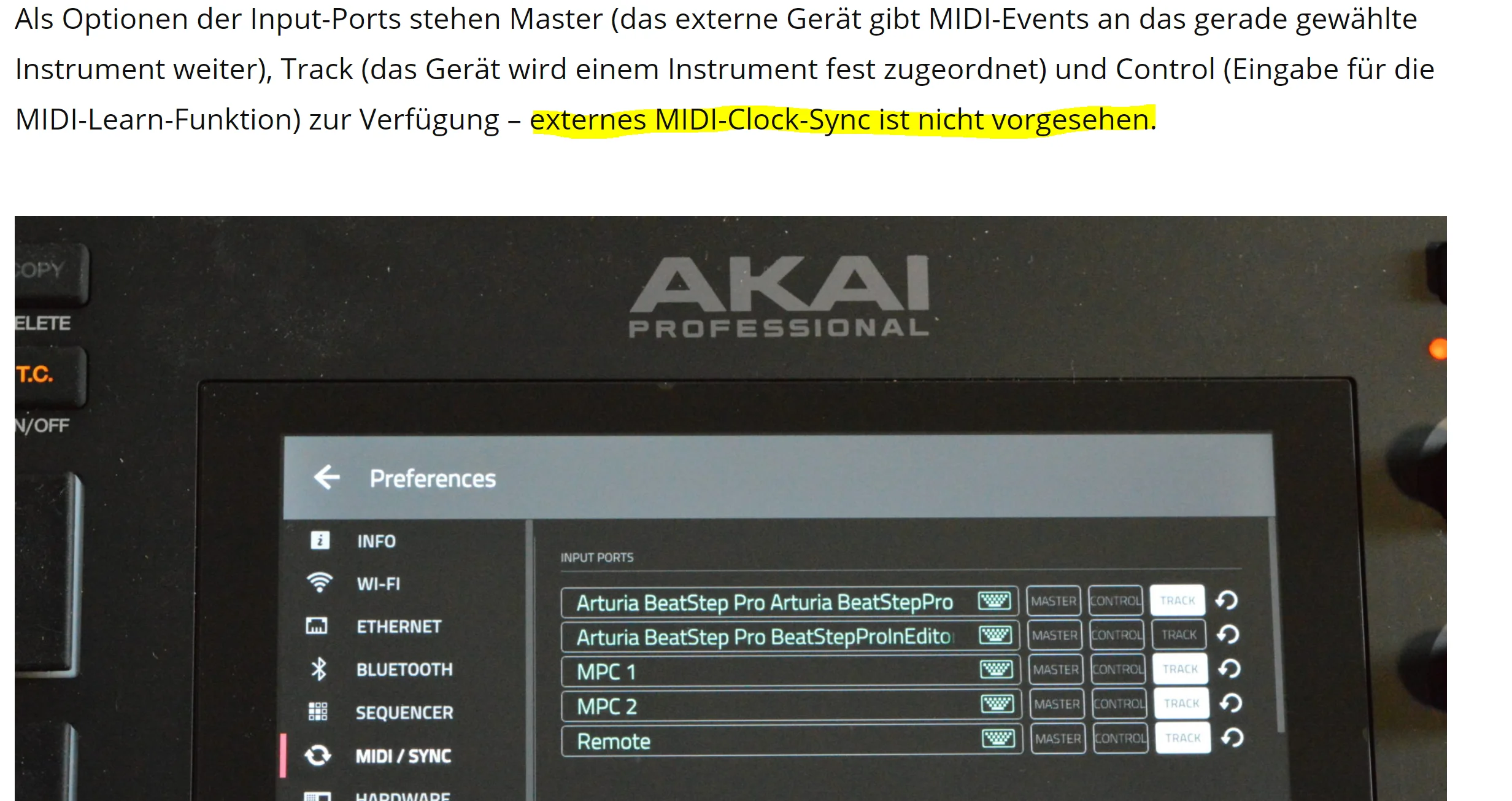 EDIT: Die aktuellen MPCs sind syncbar zu Midi Clock, MTC und Ableton Link (was auch immer das ist).