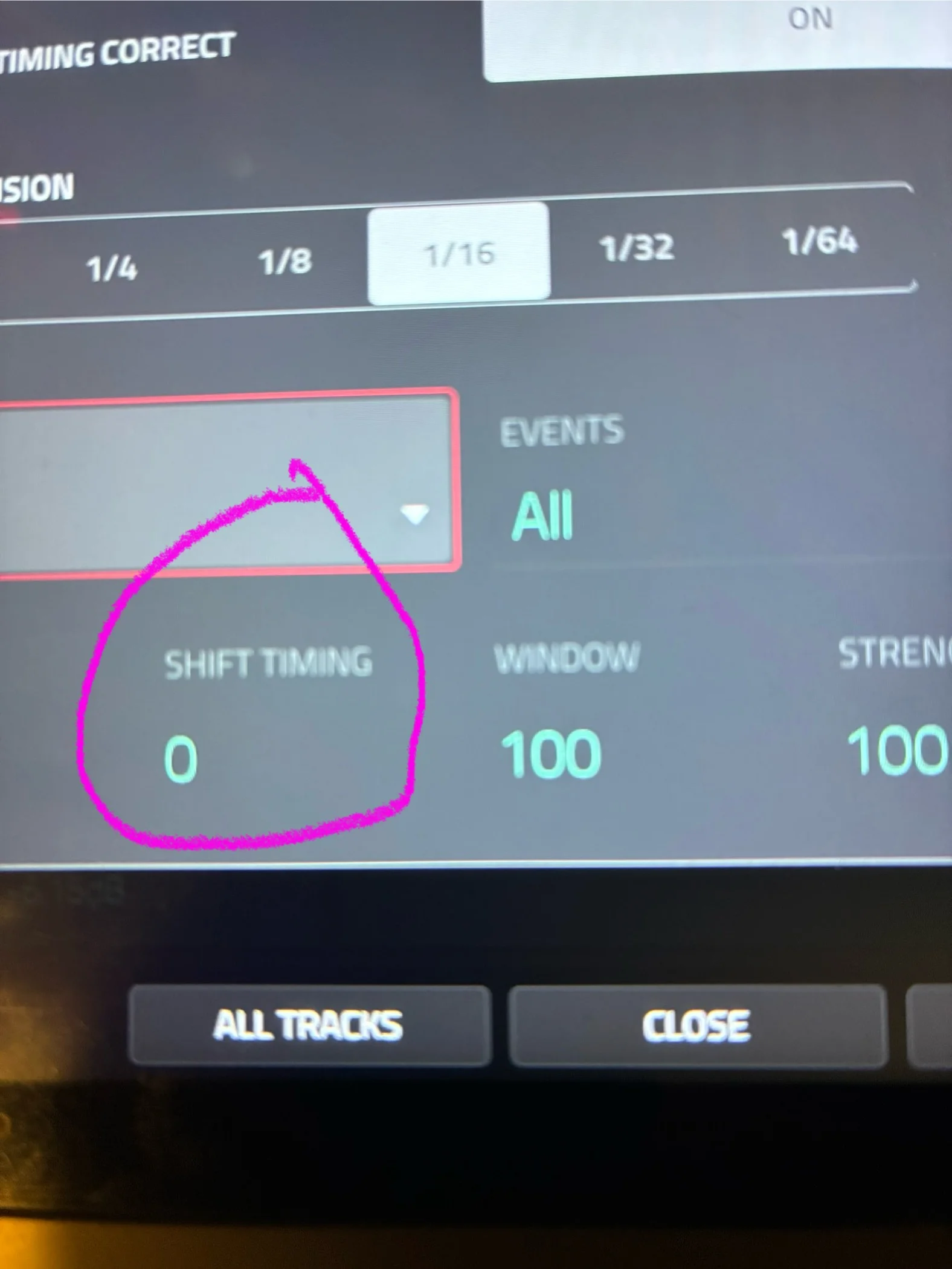 Ja und shiftest du da nach vorne oder shuffelst?Ich kenne nur den globalen TC Mode. Der ist an mit 16tel notes.