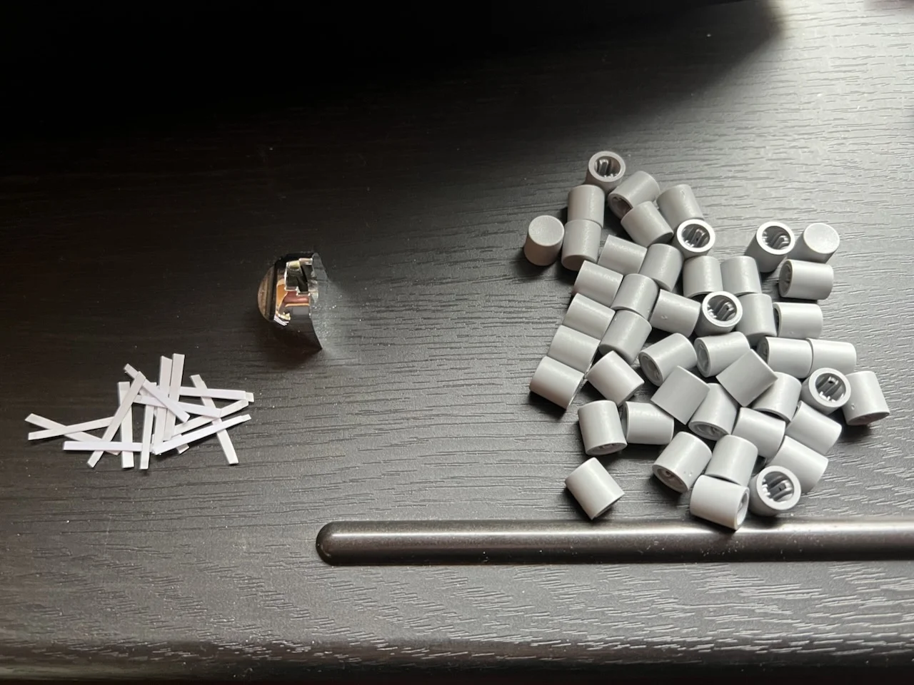Zunächst hatte ich 100 weiße "Drehknöpfe für Schiebepotentiometer" (über die Bezeichnung komme ich immer noch nicht hinweg) bestellt, um danach erst zu bemerken, dass die gar nicht vorrätig sind, woraufhin ich gleich noch mal 60 graue Knöpfe geordert habe, die dann auch prompt heute (also nach eineinhalb Tagen) ankamen.