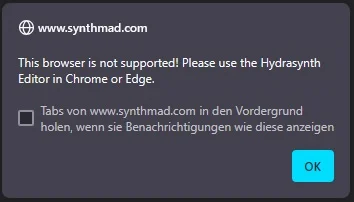 Ist auch ein Ein Mann Projekt soweit ich das sehen kann, schön wenn die Community das in die Hand nimmt. Von ASM Seite gibt es keine Pläne für einen offiziellen Editor.Firefox unterstützt Web-MIDI noch nicht so lange. Das kam eventuell bei den Entwicklern noch nicht an, oder eventuell läuft es in Firefox auch noch nicht rund.