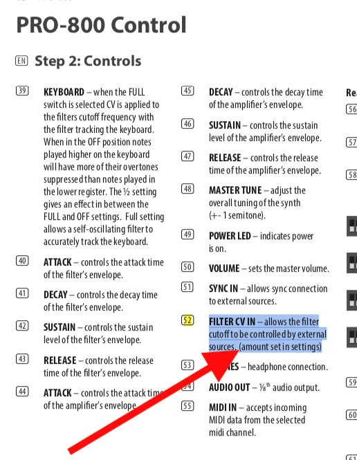 VCO? Der Eingang ist ziemlich sicher nicht für Audiomodulation gedacht. Da dürfte ein Tiefpass dahinter hängen, der aus Deiner Audiofrequenz 0 Volt Gleichspannung macht.wenn ich das Signal von meine VCO mit 10V pp Amplitude an VCF CV-In anschließe, war der Pro-800 wie tote Hosen!