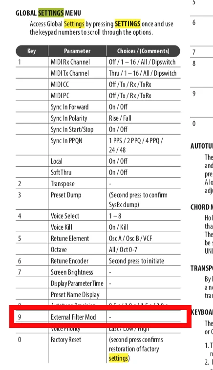 Kann man eigentlich die Resonanz für jede einzelne Stimme anpassen? Mir ist gerade bei einem Sound, bei dem nur das Filter spielt (Selbstoszillation bei hoher Resonanz) aufgefallen, dass einzelne Noten nicht spielen. Wenn ich Resonanz ganz aufdrehe, höre ich sie. Ich nehme daher an, dass bei einzelnen Stimmen das Filter erst später in die Selbstoszillation geht, oder gäbe es eine andere Erklärung? Bei “normalen“ Sounds mit Oszillatoreinsatz gibt es diese Aussetzer nicht.