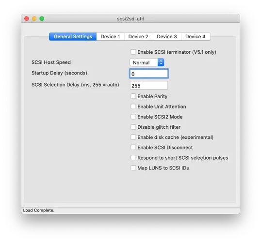 Noch wissenswert: Bei mir war in den Einstellungen des SCSI2SD noch ein Häkchen bei "Enable Parity", da ich es vorher bei einem anderem Sampler im Einsatz hatte. Das sollte entfernt werden, sieht dann insgesamt so aus:
