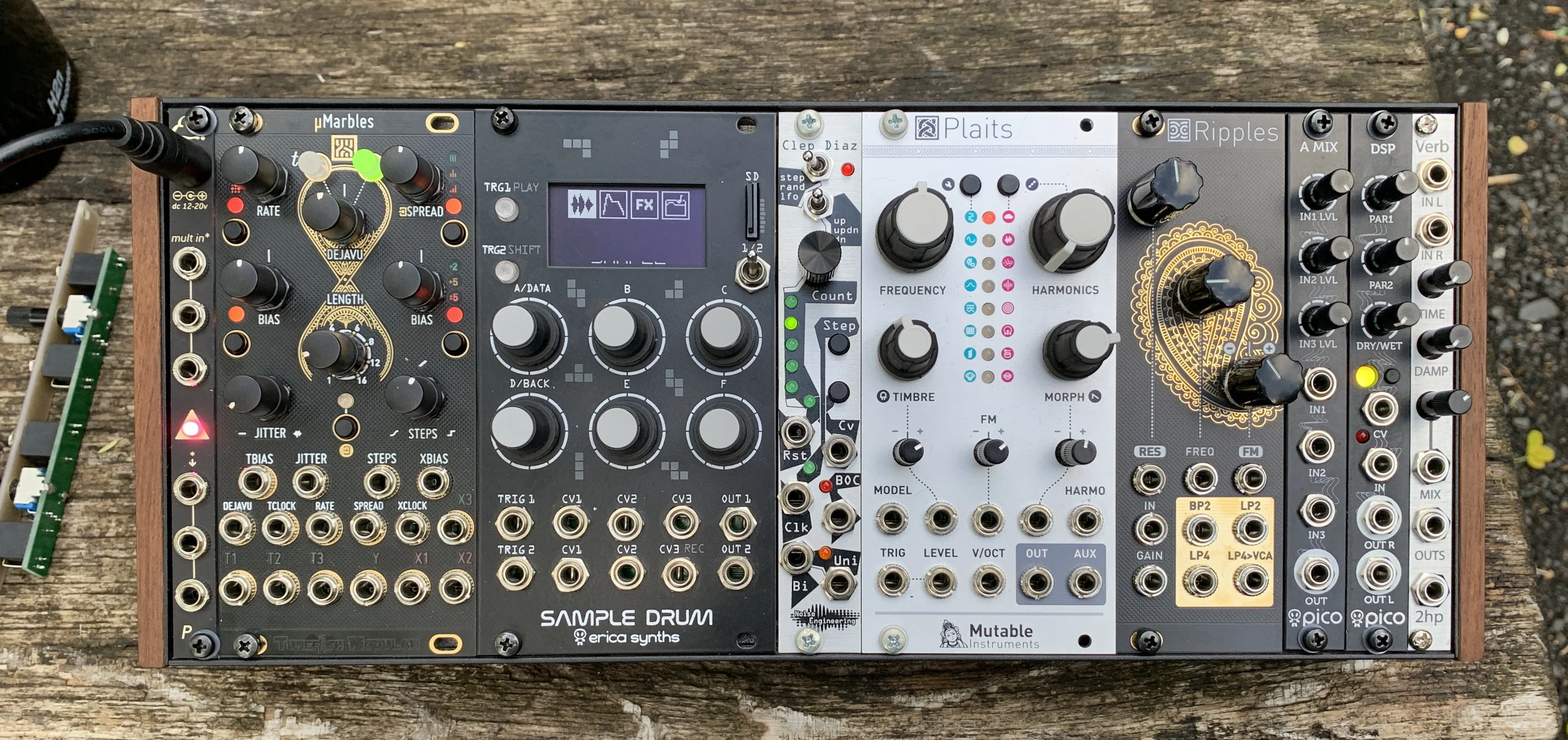 Wenn es mehr Ambient sein soll fliegen Clep Diaz, Ripples, 2HP Verb und Pico DSP raus und der Typhoon (Clouds in 16HP) kommt rein.