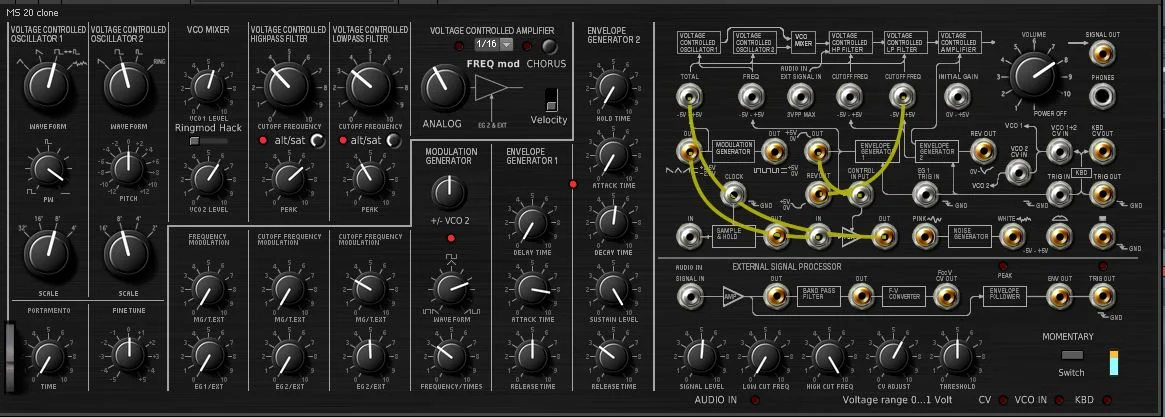 So eine Simulation ist oft ein wenig am Sound vorbei den man erwartet - insbesondere beim drehen und bei Pegeländerungen. Damit meine ich nicht allein eine "authentische" Simulation im Sinne von "original" - sondern auch eine die einfach anders reagiert.Ich wollte immer einen MS20 wegen der garstigen Sounds. Dann fand ich das hier in der Reaktor User Lib. Macht genau das wofür ich die Hardware gekauft hätte.