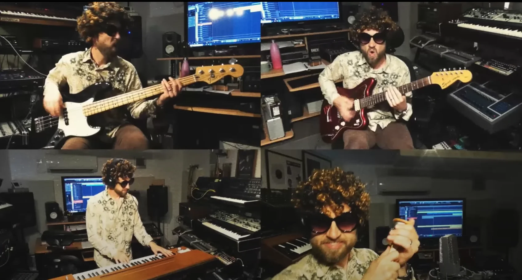 Um Euch da entgegen zu kommen sage ich, "okay", dann macht das so. Aber um den eigentlichen "Geist" um den es geht dabei nicht einfach über Bord zu werfen, sage ich Euch dass mindestens eine Videospur von vorne bis hinten durchlaufen muss, was ihr in dem Moment so treibt wenn der Song gerade "performt" wird. Wenn Ihr auf die "Entstehungsgeschichte" nicht verzichten könnt, dann macht Bild-im-Bild Einblendungen wie es z.B. bei "BadGear" Jams zu sehen ist. Da gibt es immer eine "Masterspur", weitere Einspielungen sind in Fenstern zu sehen.