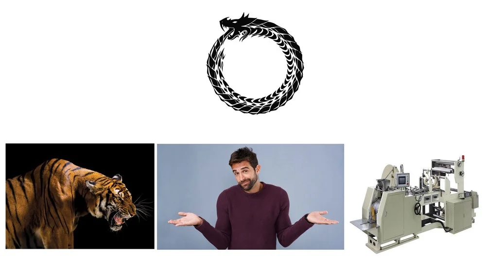 Na gut, dass du da keine Scheißhausfliege genommen hast. Hätte die Suche bis hierhin noch weiter verkompliziert.Nee. Kein Drachen. Der Tiger steht da für Tier. Es könnte auch ein Karnickel sein.