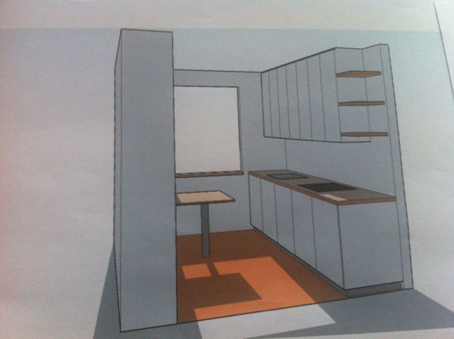 Das beschreibt die Aufteilung nach dem Umbau(zwischen Flur/Küche, Flur/Arbeiten und Wohnen/Schlafen waren Mauern eingebaut), wodurch maximales Licht und gefühlte Großzügigkeit der Räume erreicht werden sollte:
