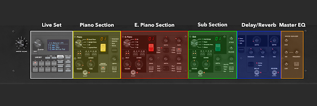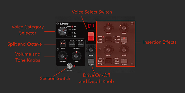 Was mir gut gefällt sind die Direct Controls v.a. in der E-Piano Sektion. Da lässt sich leicht ohne Menue-Diving am Klang drehen.