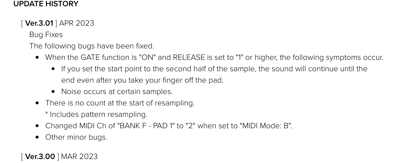 Und Roland hat Mitte April mit ein V3.01 Bug fixes Patch nachgelegt.