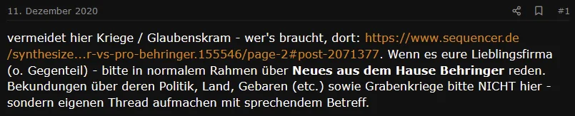 REGELN: bitte sachlich, keine Diskussion über Geschäftgebahren Behringers, Patente, deren Anti-Youtuber/Magazin Kampagnen, Rechtliches, China-Herstellung,​