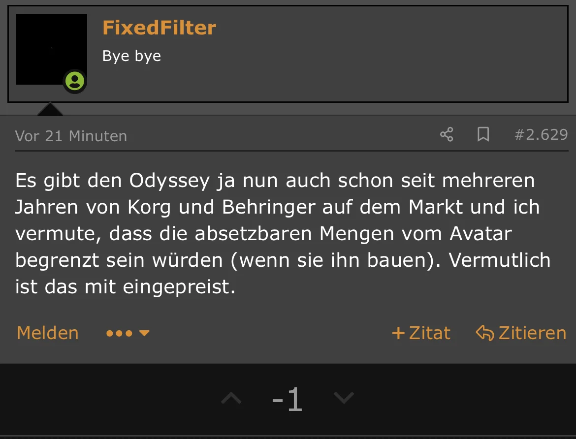 Ich finde es erstaunlich, meine Antwort war nicht polemisch oder an der Sache vorbei, aber ich bekomme trotzdem einen Dislike. Glaubt denn irgend jemand, dass Behringer seine Geräte nicht auf einer marktwirtschaftlichen Grundlage baut?