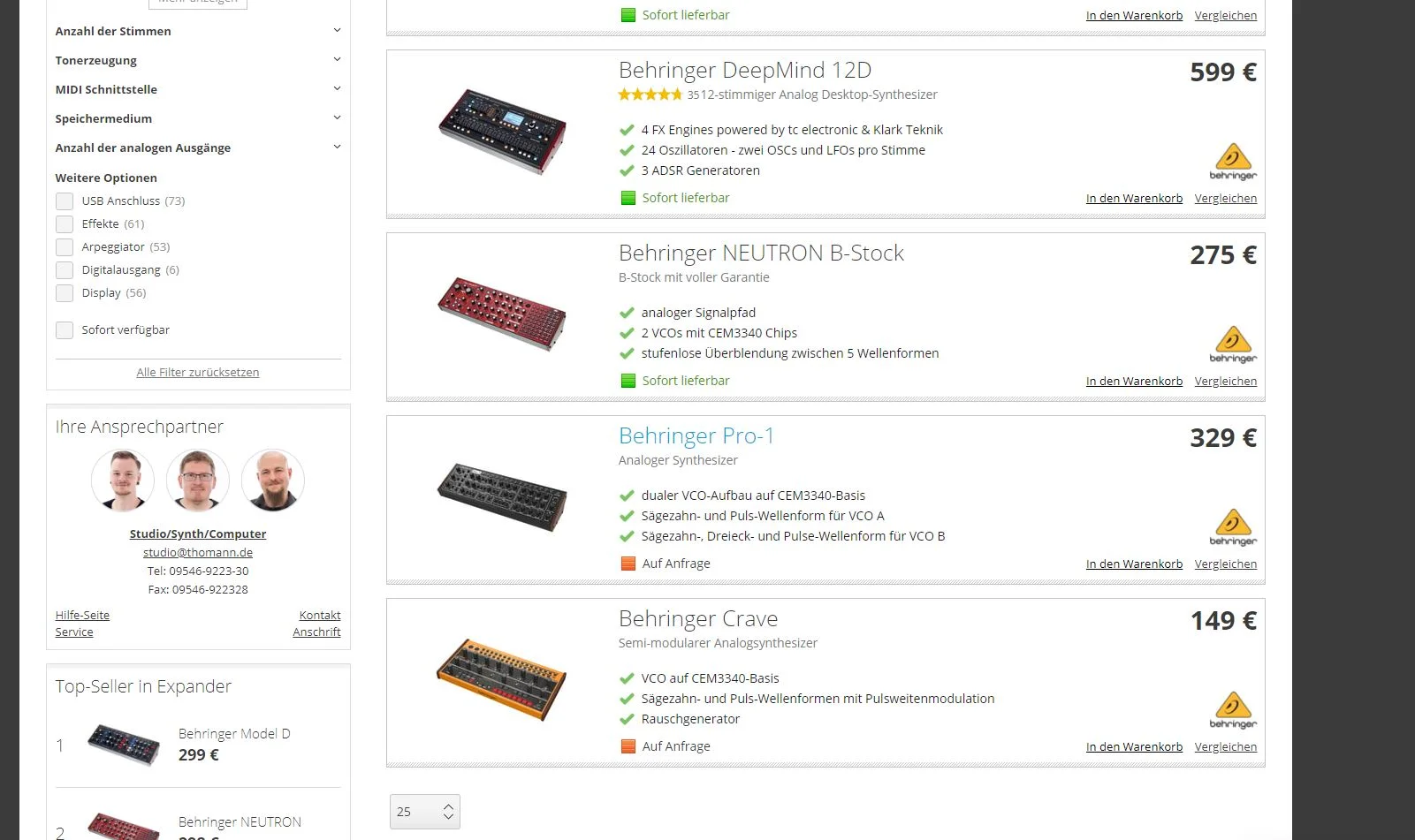 Wobei sich die Läden da nichts tun. Musicstore hat ja die Geräte zum gleichen Preis wie Thomann angeboten, obwohl Thomann die erste Charge per Luftfracht geordert hat. Der Pro-1 ist jetzt der erste Synthi von Behringer, wo der Musicstore billiger ist. Bin gespannt, ob Musicstore den Preis anhebt.