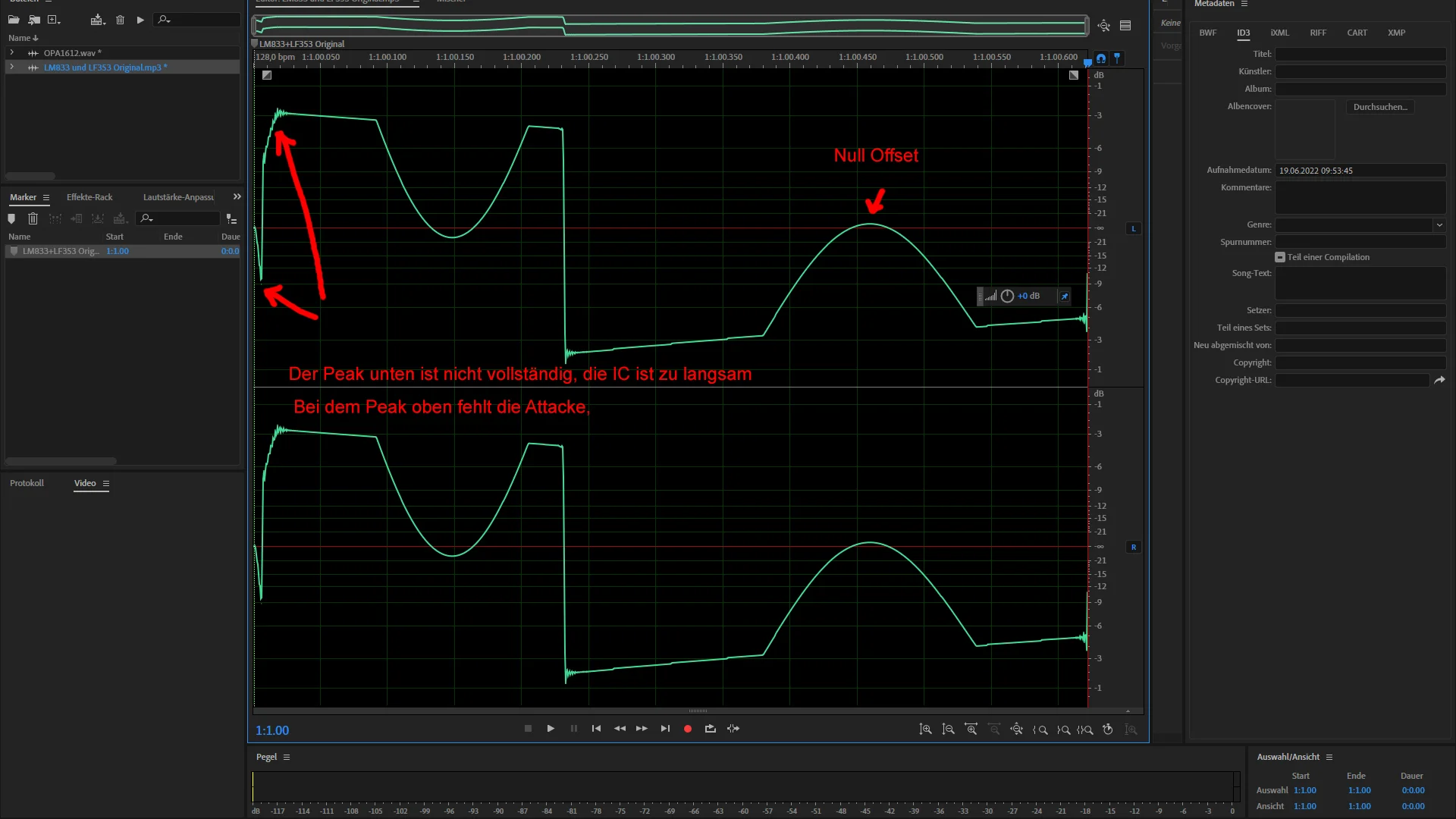 Die Auswirkung von der Kombination LM+LF auf das Signal kann man trotzdem auch bei mittelmäßigem DA-Wandler in Vergleich mit sehr teuren OpAmps gut erkennen.